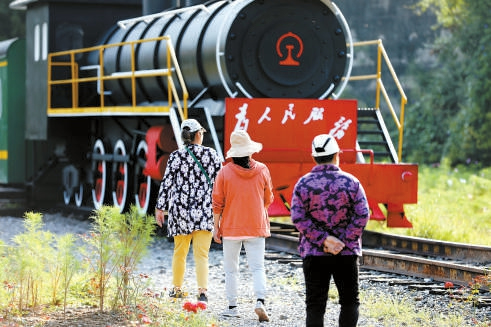 導(dǎo)覽過(guò)程中,他特意在山間的八路軍雕像處多停留了一會(huì)兒,為游客講述著這里的紅色文化。在邢衛(wèi)兵的帶領(lǐng)下,游客們走過(guò)虛擬的“戰(zhàn)場(chǎng)”“防空洞”,來(lái)到了紅色文化紀(jì)念館??粗拱?、實(shí)物和雕塑,不少游客的神情變得肅穆起來(lái)。一旁的邢衛(wèi)兵看在眼里,喜在心頭,挖掘紅色文化這步棋,炭廠村又走對(duì)了。